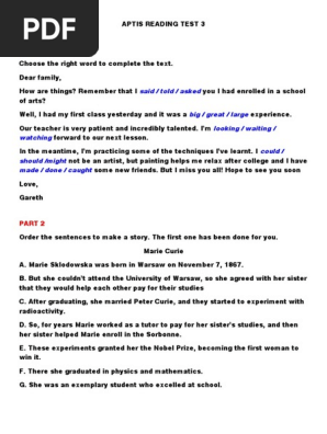 Aptis Reading Teachers Part 1 1 Docx Test Assessment Reading Comprehension