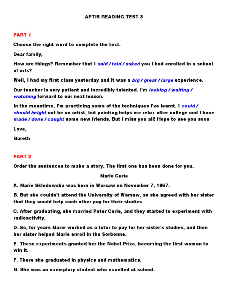Free Aptis Exam Practice Materials Exam English Exam Phonics Centers